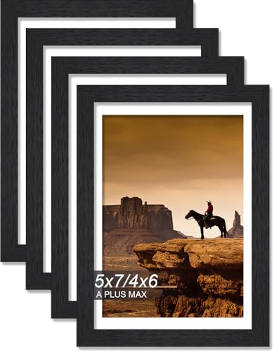 A PLUS MAX 5x7 Picture Frame Set of 4, Black Engineered Wood Frame for 5 x 7 Inch Picture Poster Photo, Light Weight 5 by 7 Frame with Wood-grain for Wall - 4 Pack/Black/5"x7"