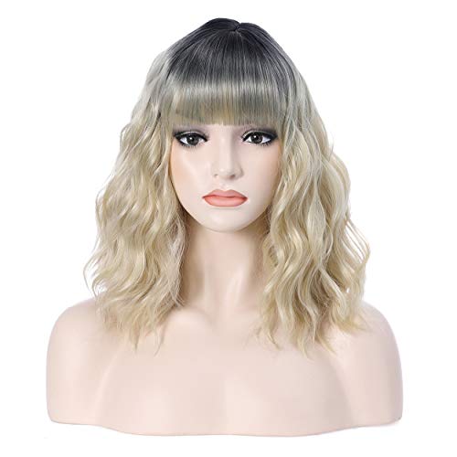 incohair 14 inches Ombre Blonde Wigs Short Bob Wigs Black to Blonde Ombre Wigs Color Synthetic Cosplay Party Daily Wigs Wig Cap Included (Ombre Blonde)