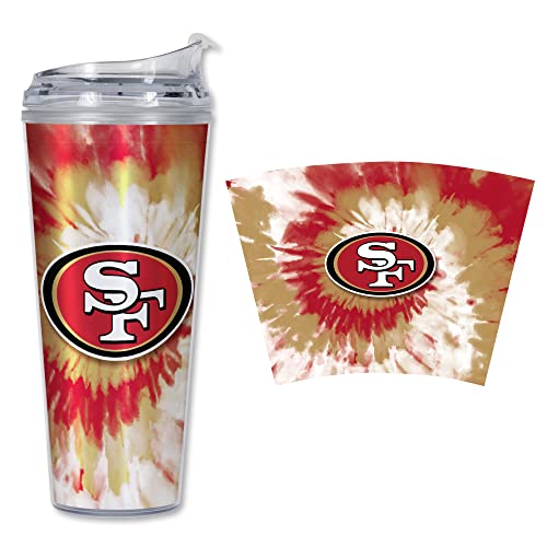 Rico Industries NFL San Francisco 49ers Metallic Tye Dye 24oz Acrylic Tumbler with Hinged Lid