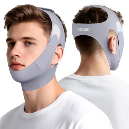 REROIO Chin Strap for Sleeping with 4-Side Adjustment, Anti Snoring Chin Strap Elasticity for Adults, Anti Snoring Devices Breathable and Durable, Snore Stopper for CPAP Users, Gray, M, 2packs
