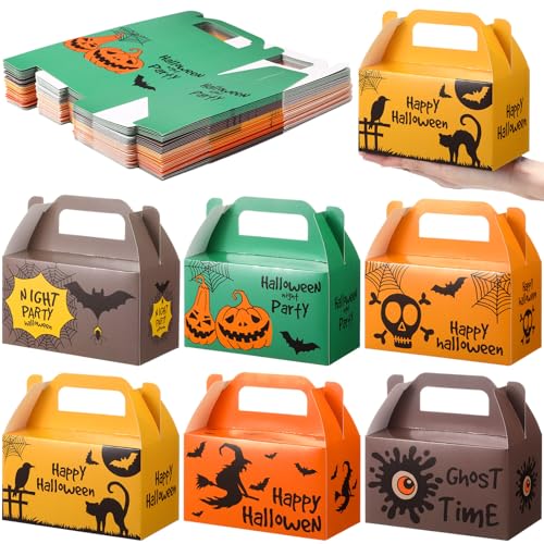 Zhanmai 36 Pack Halloween Treat Goodie Boxes Halloween Pumpkin Cookie Container Cupcake Snack Box with Handle Party Favor