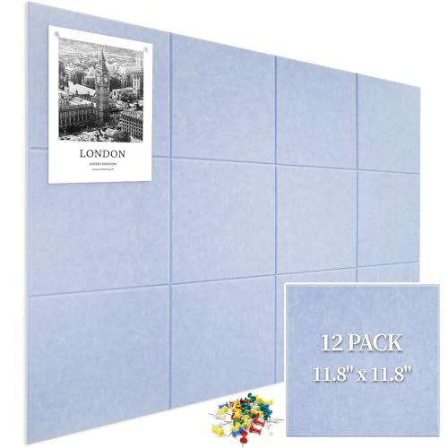 Hsgra Large Cork Board for Wall 12 Pack, Bulletin Board 48" X 36", Felt Board Wall Tiles with 72 Damage-Free Removable Pads & Push Pins, Alternative Pin Board Cork Board for Office Home, Purple