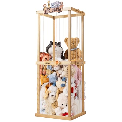 Pete&Eile Wooden Stuffed Animals Storage Basket Organizer and Holder for Gifts, Kids Plushies, for Stuffy Teddy Bear, Nursery, Playroom and Bedroom (White)
