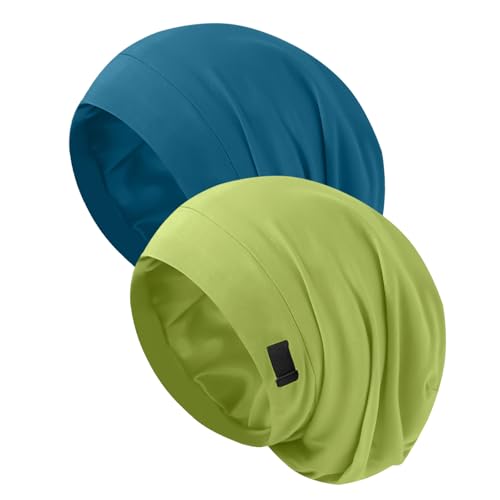 Silk Bonnet for Sleeping Women, Adjustable Silky Satin Lined Sleep Cap, Silk Hair Wrap for Sleep Night Cap for Natural Curly Hair 2PCS(Navy Blue&Green)