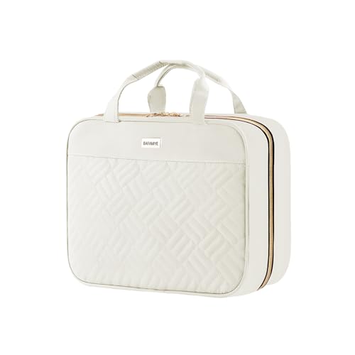 BAFAMYE 8L Travel Toiletry Bag for women - 2.1 GAL Water-resistant Makeup Cosmetic Bag Organizer With Hanging Hook for Travel Accessories Shampoo Full-size Container, Beige