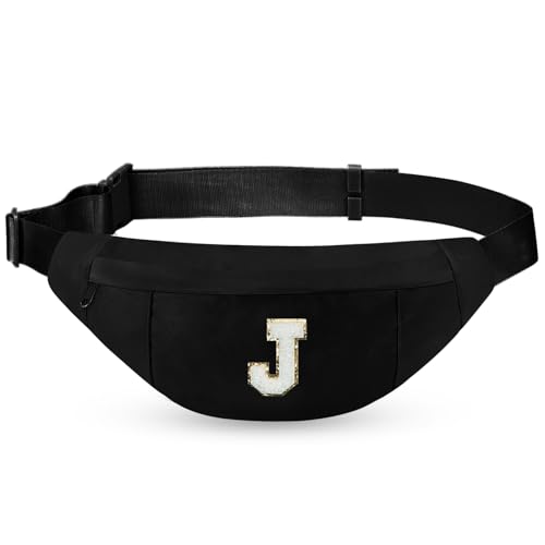 MAXTOP Birthday Gifts for Women,Personalized Initial Letter Patch Fanny Pack Crossbody Bag with 3-Zipper Easter Gift Trendy Stuff for Daughter Sister Her Black J