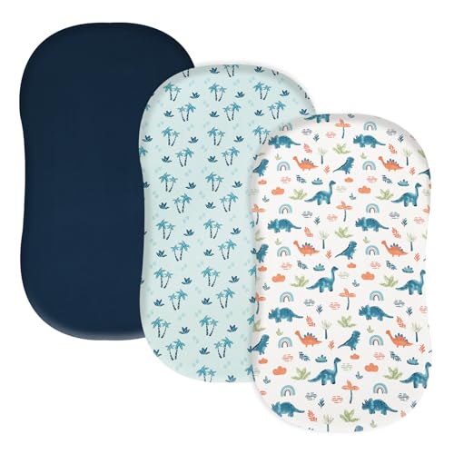 david's kids 3 Pack Bassinet Sheets, Ultra Soft Breathable Comfortable Baby Sheet Set for Boys Girls Neutral, Univeral Fit for Most Cradle and Bassinet Mattress, Dinosaur Blue