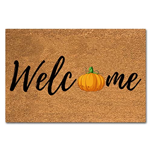 XTDJJKK Funny Coir Doormat Welcome Fall Autumn Pumpkin Thanks Giving Halloween Mats Welcome Front Porch Patio Mats for The Entrance Way Personalized Rug Novelty Coir Doormat 23.6 x 15.7inch