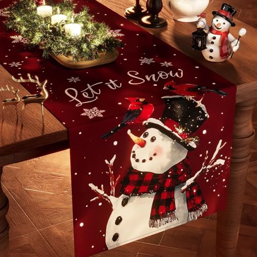 CHAMBERY Christmas Table Runner,13''X72'' Snowman Snowflakes Christmas Decorations Table Runner, Perfect for Party Dinner Table Decor,Kitchen,Mantel,Bedroom Decoration