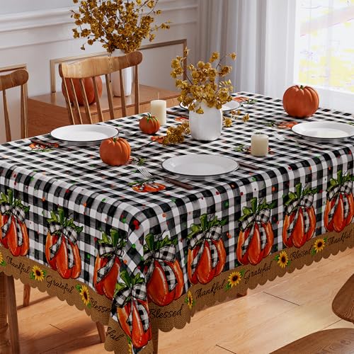 Fall Tablecloth 60x84 Inch Rectangle, Buffalo Plaid Pumpkin Table Cloth Scalloped Edge Waterproof Table Cover Seasonal Autumn Thanksgiving Holiday Picnic Party Decorations