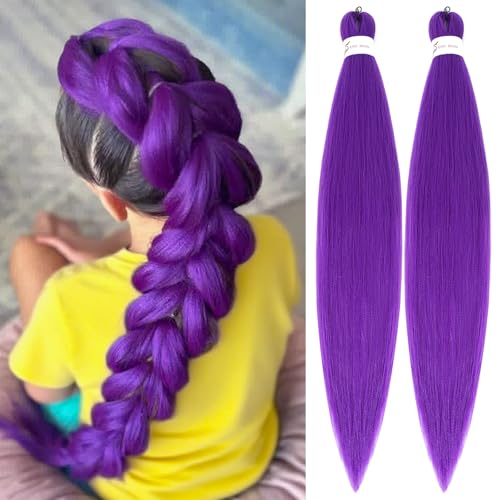 Purple Braiding Hair Pre Stretched 24 Inch 2 Pack Purple Braiding Hair Extensions Itch Free Soft Yaki Texture Hot Water Setting Synthetic Hair for Stage Party Halloween Costume Cosplay