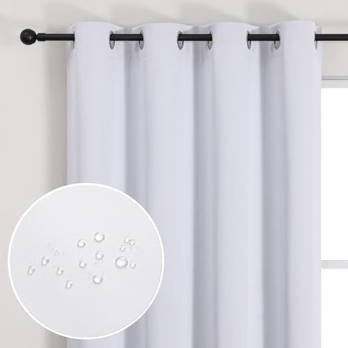Flyfun Outdoor Curtains for Patio Waterproof - Weatherproof Porch & Gazebo Curtains, Grommet Top and Tab Bottom Drape,1 Panel, 52" W x 96" L, White