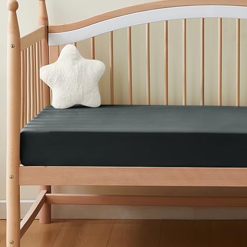 KKJIAF 1 Pcs Grey Baby Crib Sheets, Fitted Crib Sheet for Boys Girls - 28x52x8 Inches Viscose Derived from Bamboo, Breathable & Soft
