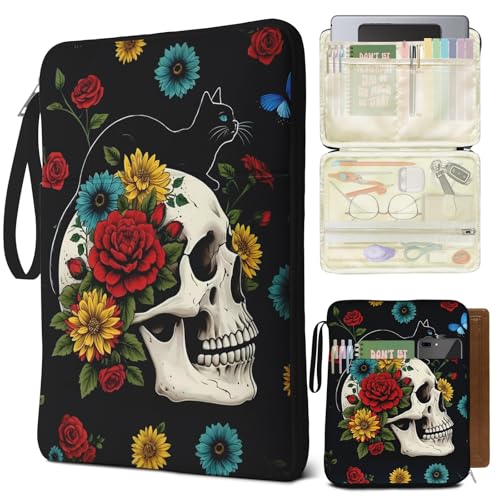 QRZIQRZ Cat Floral Book Sleeve Book Pouch, Cute Cat Floral Print Book Protector Case with Zipper, PU Leather Waterproof Book Cover Bag, Portable Book Pouch for Book Lovers Gifts Paperbacks Hardcover