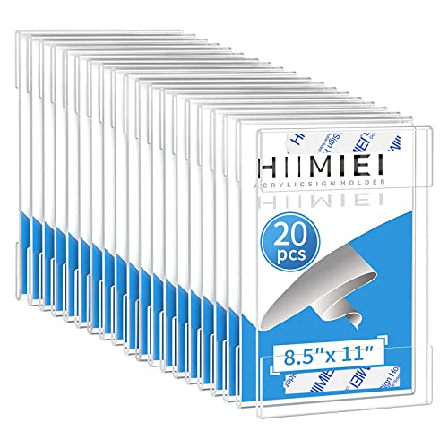 HIIMIEI 20 Pack Clear Acrylic Wall Mount 8.5x11 Sign Holder, Portrait Door Plexiglass Display Sign Holder Adhesive with 3M Tape, Plastic Photo Ads Frames Used in Office Hospital Hotel Store