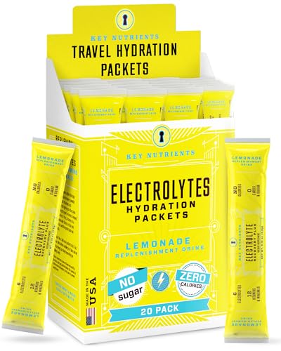KEY NUTRIENTS Electrolytes Powder Packets 20 Pack - No Sugar, Refreshing Lemonade, Hydration Packets with Electrolyte Powder for Refreshing Electrolyte Drink Mix Packets - Zero Calories