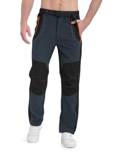 BondiTrekk Mens Snow Ski Pants Fleece Lined Winter Hiking Waterproof Insulated Snowboard Outdoor Pant with Belt Zipper Pockets Dark Grey M