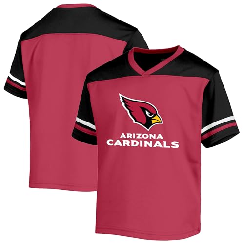 NFL Kids Youth 8-20 Officially Licensed Team Color Wordmark Primary Logo Victory Stripe V-Neck Jersey T-Shirt (Arizona Cardinals Red, 10-12)