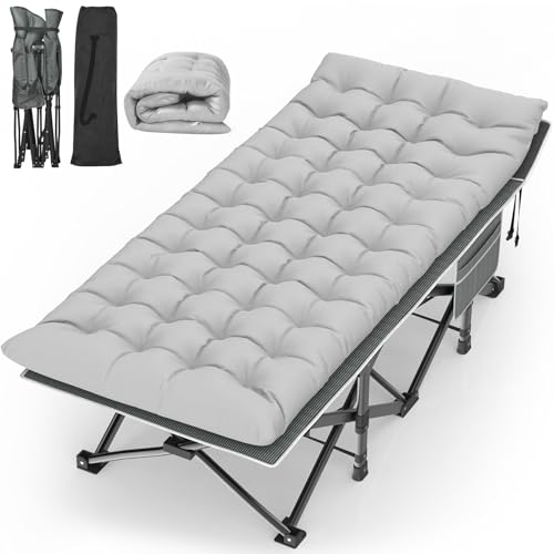 Suteck Camping Cot, 32In XXL Folding Camping Cot Heavy Duty Sleeping Bed for Adults 1200D Double Layer Oxford Cots for Camping W/Pilllow Mattress Carry Bag for Home Office Nap Beach Travel, 900LBS