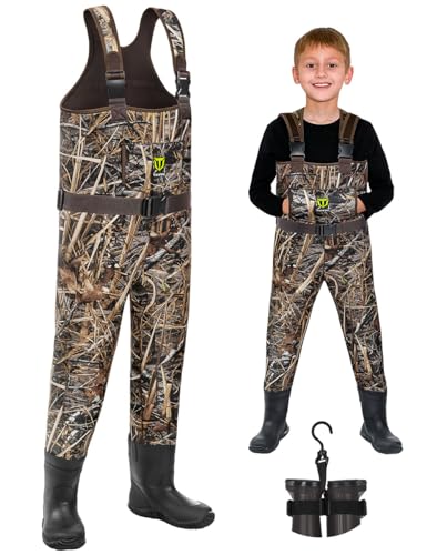 TIDEWE Chest Waders for Toddler & Children, Neoprene Waterproof Insulated Hunting & Fishing Youth Waders for Boy and Girl, Cleated Bootfoot Kids Wader, Next Camo Evos (Size 12)