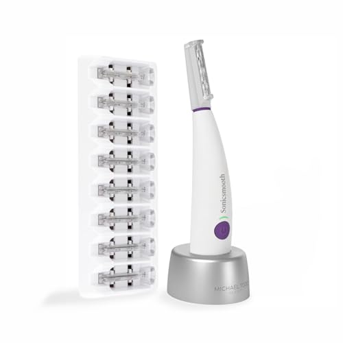 Michael Todd Beauty Sonicsmooth Dermaplane Razor for Women Face + Eyebrow trimmer Dermaplaning System - Peach Fuzz Remover - 8 Weeks of Dermaplaning Blades