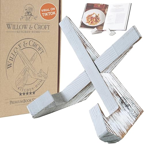 Willow & Croft Recipe Holder. Cookbook Stand. Rustic Farmhouse Plate Display Stand, Photo Picture Frame Display, Cookbook Holder, Recipe Book Holder. Distressed Cook Book Stand for Kitchen Counter.
