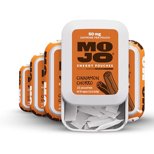 MOJO Energy Pouches Cinnamon Churro Flavor, 50 mg per Caffeine Pouch, 15 Pouches, 5-Pack