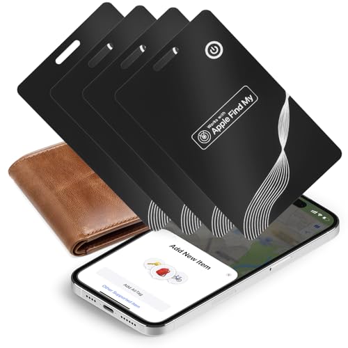 Smart Tracker Card [Apple MFi Certified] (iOS Only), Rechargeable 0.07in Thin Find My Wallet Finder, Bluetooth GPS Tracking Card for Luggage Tags, Passports, Purse, Equipment Pack (Pure black-4pack)