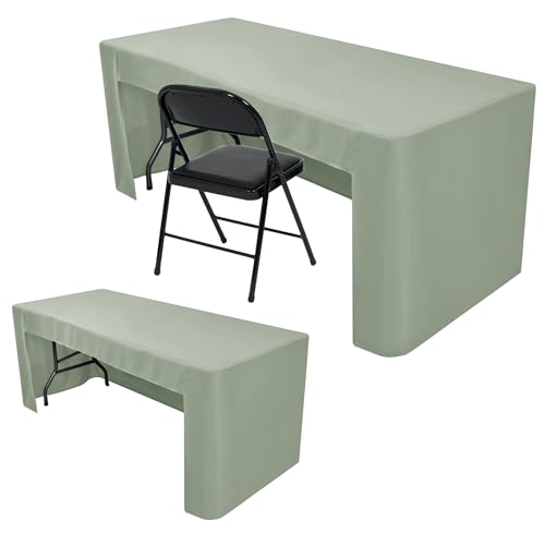 Nasitos 2 Pack Sage Green 6ft Table Cloth Fitted-Open Back Folding Table Cover Washable Fabric and Wrinkle Resistant Table Cloth for Trade Show, Book Fair, Career Fair, Convention, Events