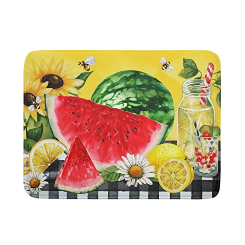 Dish Drying Mat Watermelon Summer Fruit Bee Flower Check Yellow Absorbent Dishes Pad Drainer Rack Mats Heat Resistant Kitchen Counter Protector Plate Bottle Pot Holder 18x24 Inch