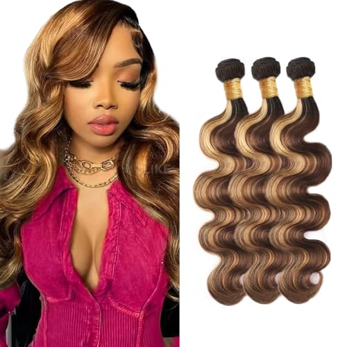 28 30 32 inch 4/27 Bundles Human Hair Ombre Body Wave Bundles Brown and Blonde Highlight Human Hair Bundle
