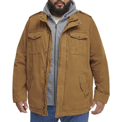 Levi's Men's Washed Cotton Military Jacket with Removable Hood (Standard and Big & Tall), Brown, X-Large Tall
