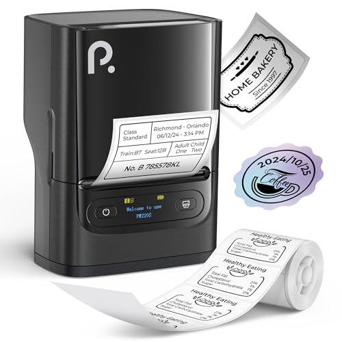 PM220S Label Maker Machine with Tape, 2 Inch Bluethooth Portable Thermal Label Printer for Small Business, Office, Home, Sticker Printer for Phone and PC, Black