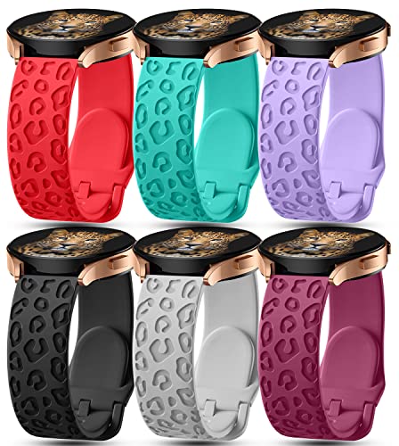 IKANFI 6Pack Engraved Band Compatible with Samsung Galaxy Watch 5 Band/Galaxy Watch 4 Bands/Galaxy Watch 3 Bands/Active 2 Watch Bands,20mm Leopard Silicone Sport Strap Replacement for Women Men-