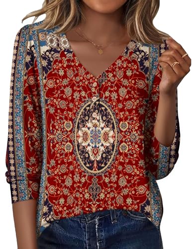 Zeagoo Woman Fall Tops 2025 Floral Long Sleeve Dressy Blouse Bohemian Tops Boho XL