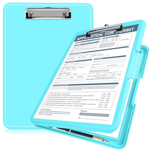 ANZNKU Clipboard with Storage 13x9.6in, Storage Clipboard Side Opening Plastic Clip Board Heavy Duty, Nursing Clipboards Foldable, Letter Size Smooth Writing for Work, Study(Mint Blue)