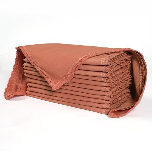Ramanta Home Linen Flax Cloth Napkins Set of 12| 18x18 Inch | Premium Cotton Linen Flax Lace Soft & Durable | Washable Ideal for Everyday Use Parties Thanksgiving Christmas Halloween Rust