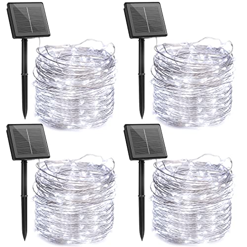 Minetom Solar String Lights, 4 Packs Total 132Ft 400 LED Solar Fairy Lights, Waterproof Solar Lights for Outside Patio Yard Tree Wedding Christmas, Pure White