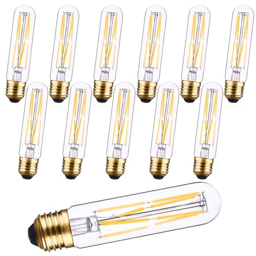 CREATE BRIGHT Candelabra Led Light Bulbs T10 Tubular Edison LED Filament Bulb 8W E26 Daylight White 5000K,Clear Glass,960LM,12 Pack