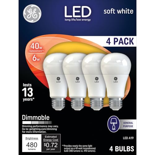 GE LED Light Bulbs, 40 Watt, Soft White, A19 (4 Pack)