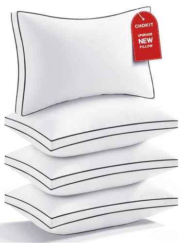 Premium Pillows Standard Size Set of 4, Fluffy and Supportive 7D Down Alternative Bed Pillows, Luxury Soft Hotel Quality Gusseted Pillow for Side Back Stomach Sleepers, Relief Neck Head Shoulder Pain