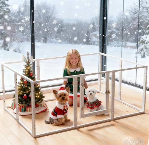 Acrylic Dog Play Pen Indoor H:24" Clear Dog Playpen with Door Metal Frame Dogs Fence Easy Wipe & Assemble Puppy Playpen Puppies/Small Dogs/Cats,White Pet Fence(10-Panel)