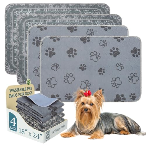 Homimp Washable Pee Pads for Dogs,4 Pack Reusable Puppy Pads,Absorbent and Leakproof Dog Pee Pads,Non Slip Puppy Training Pads,Pet Mat for Floor,Crate,Couch,Whelping,Grey 18"x24"