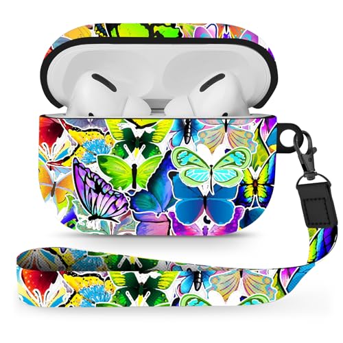 Maxjoy Compatible with AirPods Pro Case Cover, Cute Flowers Soft Protective for AirPod Pro 2019 Charging Case,Purple Green Butterfly Lanyard