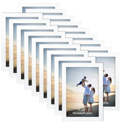 Hoikwo 18 Packs 4x6 White Multi Plastic Picture Frames Set with Plastic Cover for Family Photos, Artwork, Light Weight Bulk 4 by 6 Frames Pack for Wall Hanging and Table, Stylish Picture Frames