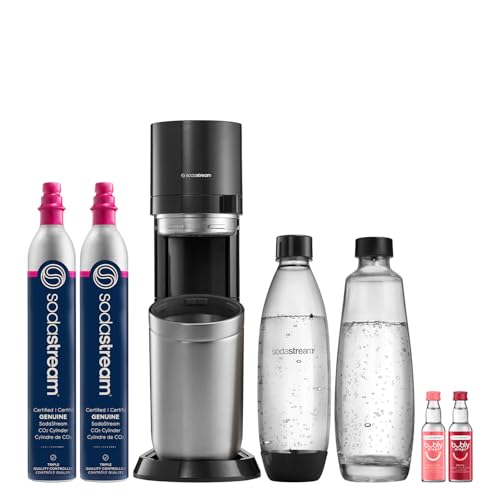 SodaStream E-Duo Sparkling Water Maker Bundle (Black) with CO2, Carbonating Bottle, (1) 1L Glass Bottle and 2x Bubly Drop Flavors