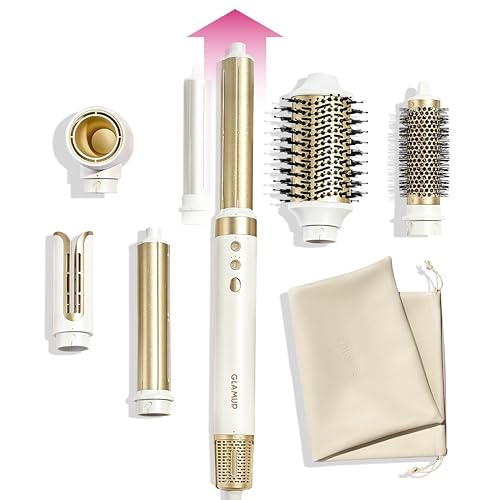 GLAMUP® 6 in 1 Hot Air Styler, Upgraded Long Barrel, Round Brush, Powerful High Speed Dryer, Tight Grip, Curling Volumizing Gift Set with Travel Bag