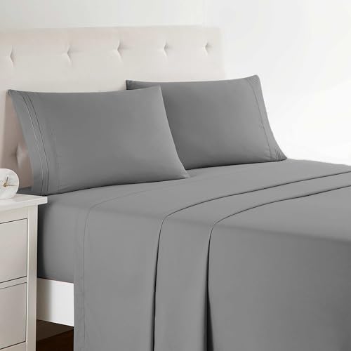 Clara Clark Bed Sheets, Premier 1800 Series Bed Sheet Set, Deep Pocket, Wrinkle, Fade, Stain Resistant, Luxury Soft Bedding Sheets & Pillowcases, King, Frost Grey