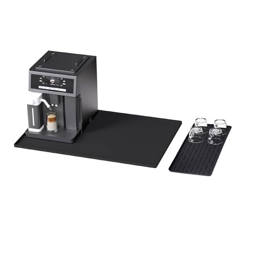 SCYFREID Silicone Coffee Mat, 24"X16" Heat-Resistant,Eco-friendly,Hygienic Drying Pad,Leak-Proof and Non-Slip,Removable Silicone Mat with Concave and Convex Design,(Black 24X16)
