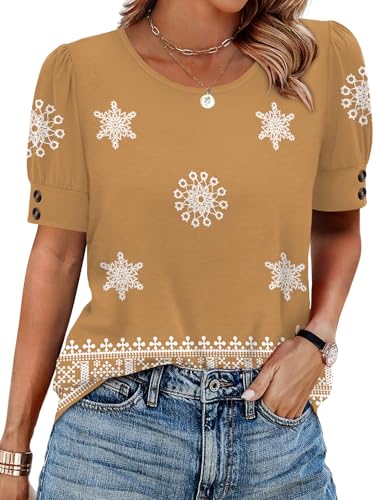 Boho Tops for Women Dressy Casual Blouses Plus Size Shirts Short Sleeve Travel Vacation Teacher Outfits Spring Summer Clothes Tangerine M